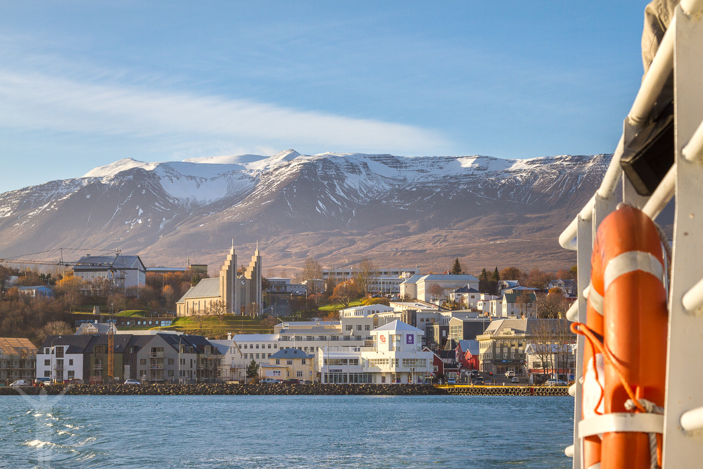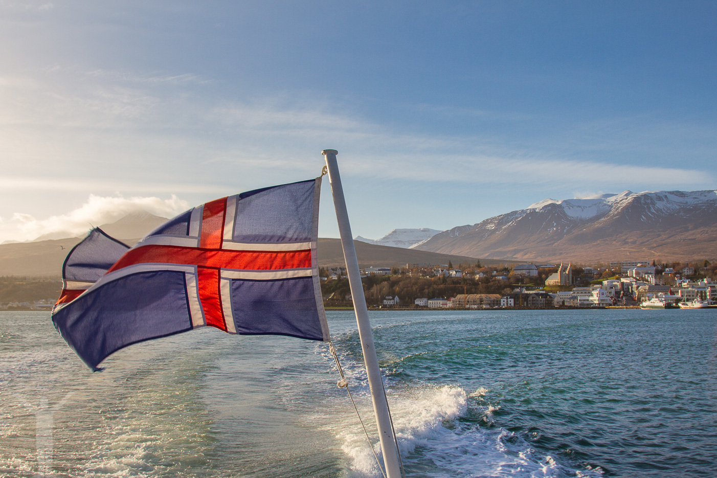 Klockan slår ett och vi kastar loss för vårt valsafari på Island. Det är ett blåsigt Akureyri men det märker vi först när vi kommit ut en bit på fjorden. Bakom oss lämnar vi en stad och dess fjällkuliss. Det är vackert så en nästan går sönder av ögonlycka.