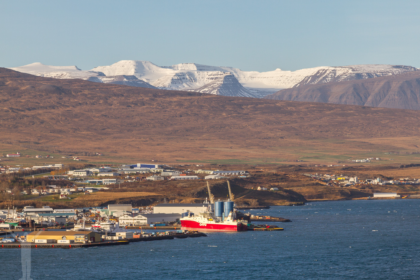 Efter ett par timmars roadtrip och en halvtimmes huttrande vid det närliggande Goðafoss kommer vi på höjderna mittemot Akureyri. Här ser vi de isländska fjällmassiven, några av de största och högsta på hela ön. Det är en vidunderlig vy den här stan har och trots dess öde läge, längst upp på Island, får jag ändå en känsla av att jag skulle kunna stanna betydligt längre än en natt.