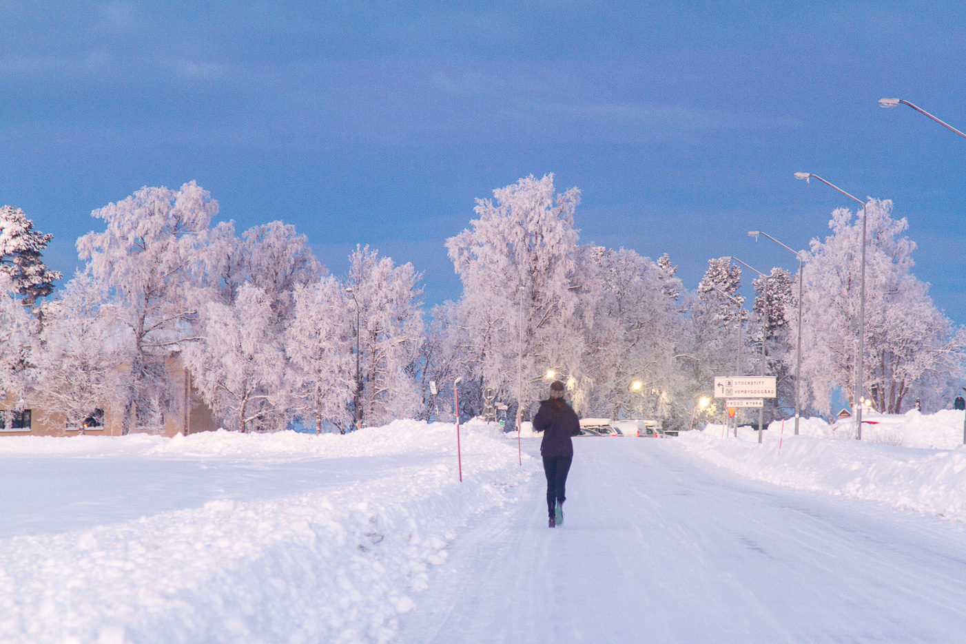 Väl hemma packade jag om väskor och annat och åkte ut på Frösöns fina vidder och fångade solnedgången vid Sommarhagen (!). Jag sprang i halvmeterdjup snö, kastade mig på marken för att få de rätta vinklarna och försökte njuta av stunden på samma gång.
