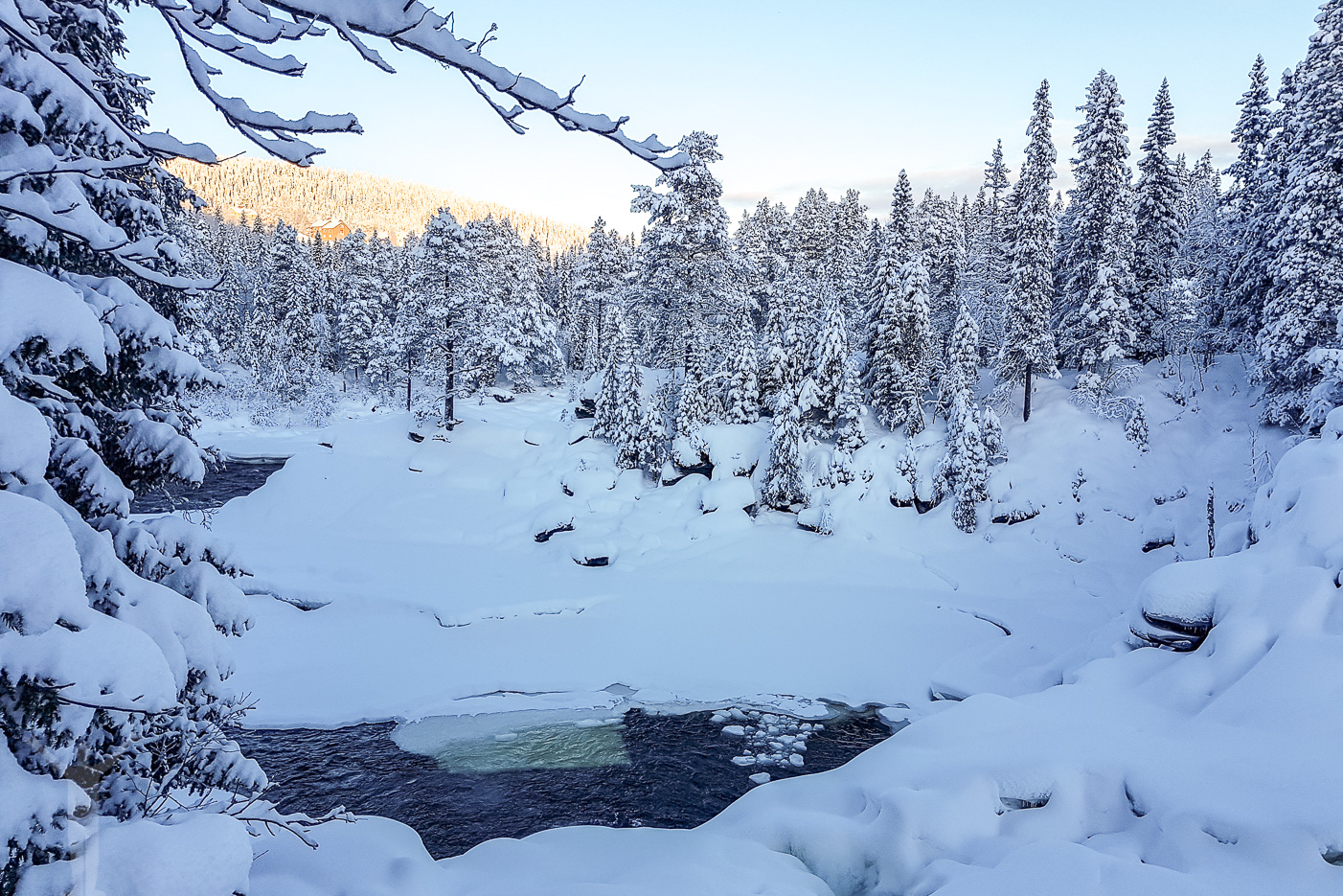 Jag fick faktiskt ha en liten miniguidning för några turister på plats och så fick några britter (som såg ut att frysa) min överblivna parkeringsbiljett också. God jul, typ. Ristafallet var otroligt vackert. Nästan djupfryst, isgrottor att titta in i och med snön hängandes på granngranarna.