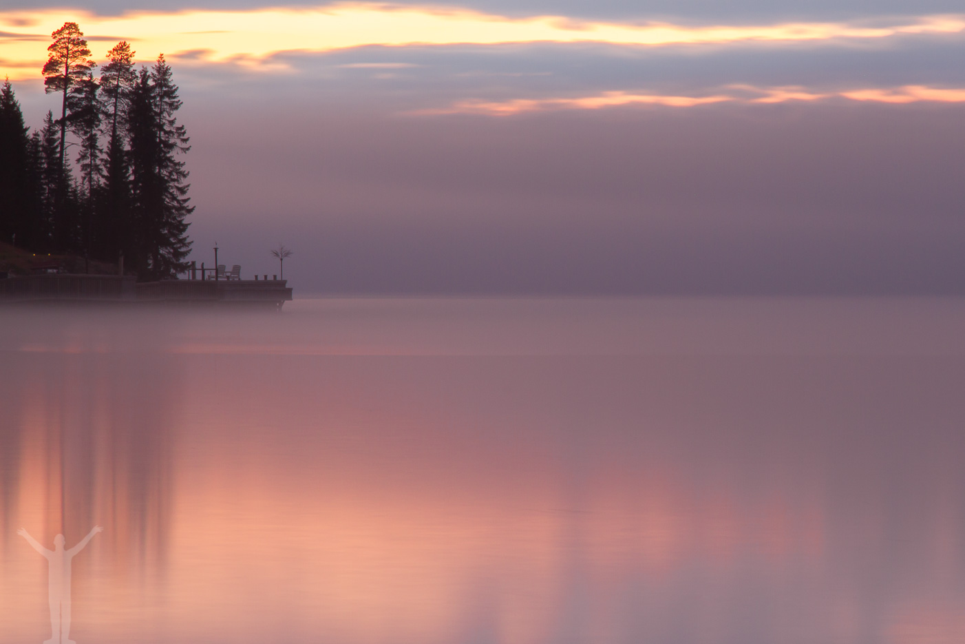 Framåt skymningen fick jag också frågan om jag ville hänga med på en kort kort kort fotosväng med en stilla Storsjön, dimma och skymningsfärger. Alltså. Ja. Det var ett bra initiativ från broderskeppet så vi stack bort till nya bostadsområdet Mose Backe på Frösön och rullade hela vägen ner till sjökanten.