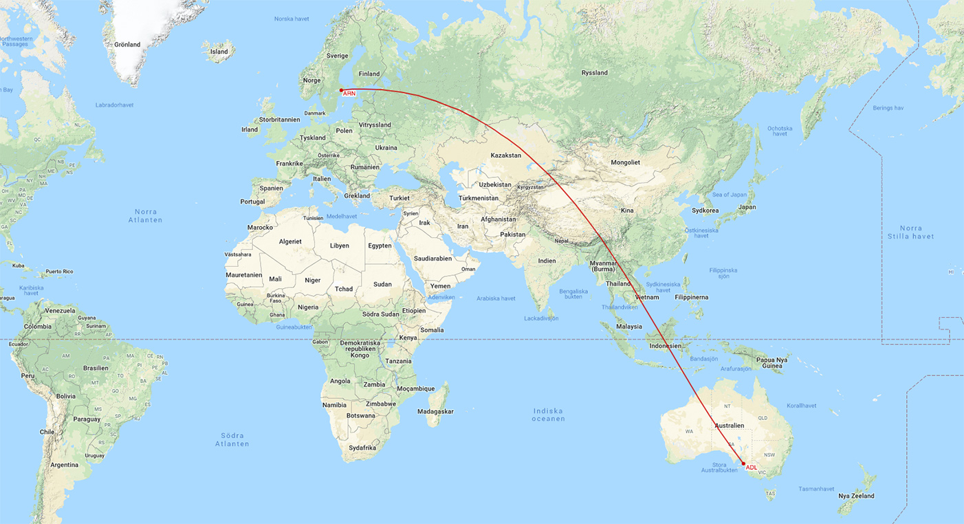 - Räckvidden ligger på 15000 kilometer. Det betyder att A350 under optimala förhållanden flyger Stockholm till Adelaide non-stop.