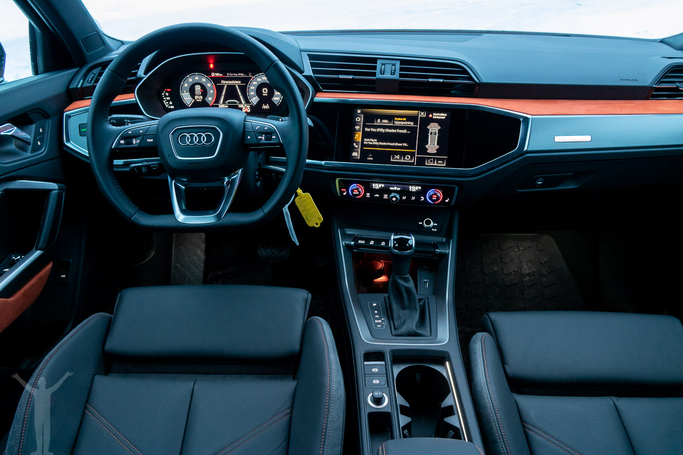 Jag är inte längst i klassen och har sällan problem med benutrymmen eller takhöjd. Nya Audi Q3 är så klart inget undantag och den är väldigt rymlig både i fram- och baksäte, samtidigt som den ger en kompakt känsla (det låter lite ambivalent, jag vet).
