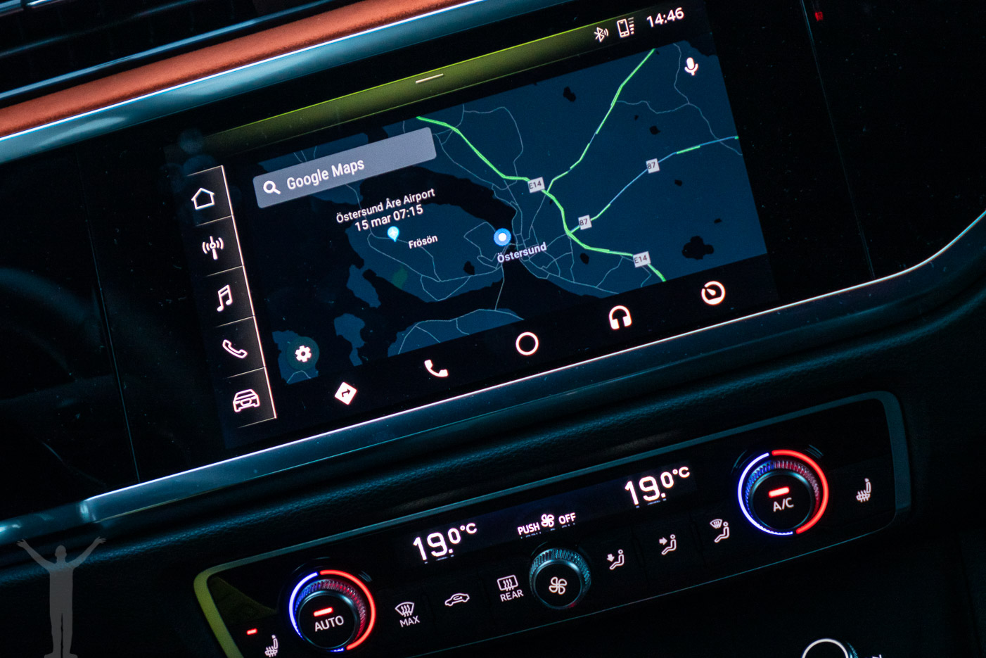 Oavsett lösning så måste man koppla in mobilen med kabel. Apple Carplay fungerar direkt och apparna kommer upp på touchskärmen. Supersmidigt! Även Android Auto ska fungera direkt men när det här skrivs (tidigt 2019) så har nya Q3:an inget officiellt stöd för Android Auto på svenska. Det går så klart att komma runt, läs min guide om hur du får Android Auto på svenska!